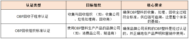认证体系由非营利组织 Zero Plastic Oceans​ 管理,主要分为两大类: